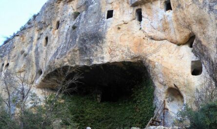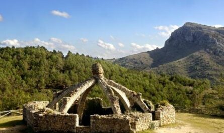 La ubicación cerca de un bosque de pinos y justamente delante de esta hay una explanada rodeada de cipreses que marcaba el límite con Agres.