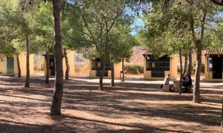 Este paraje natural El Molino tiene dos zonas de pinada de bastante porte, como he dicho antes, con mesas a la sombra y en el lado derecho conforme entramos por la pasarela, al fondo, encontramos barbacoas que podremos utilizar.